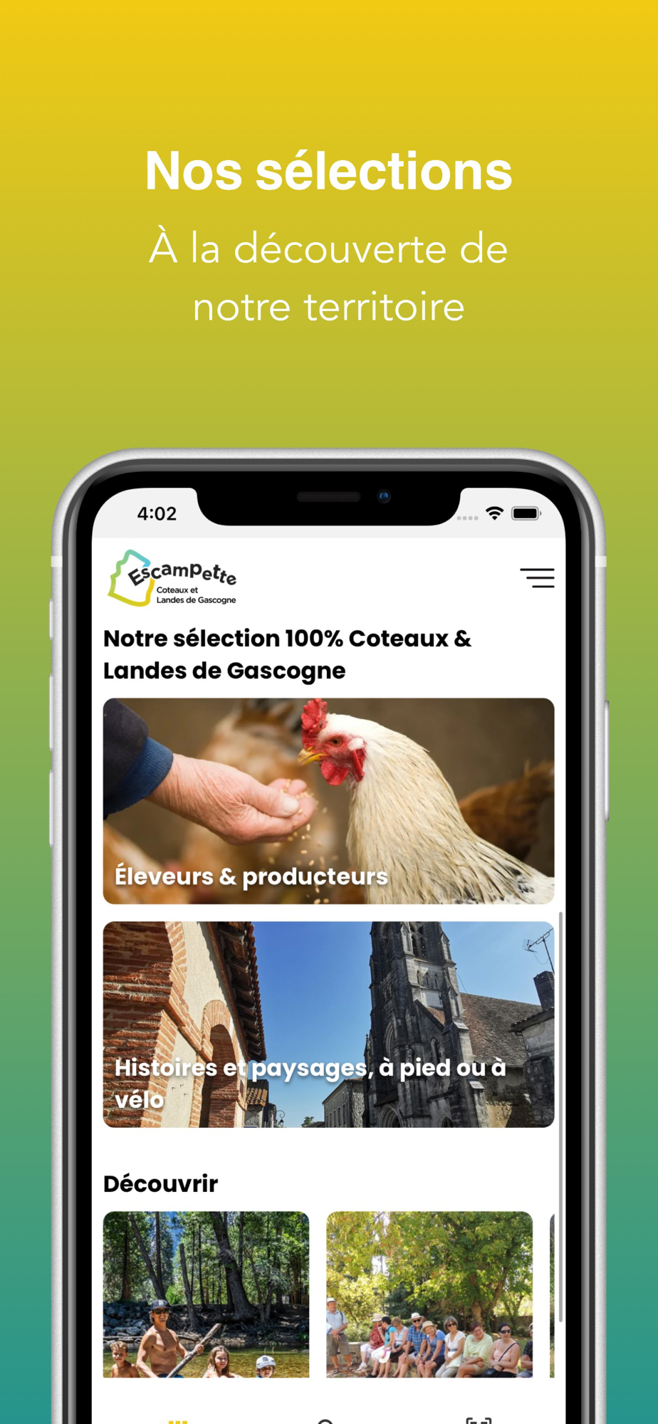 L'application Escampette vous propose vos meilleures activités en Coteaux et Landes de Gascogne !