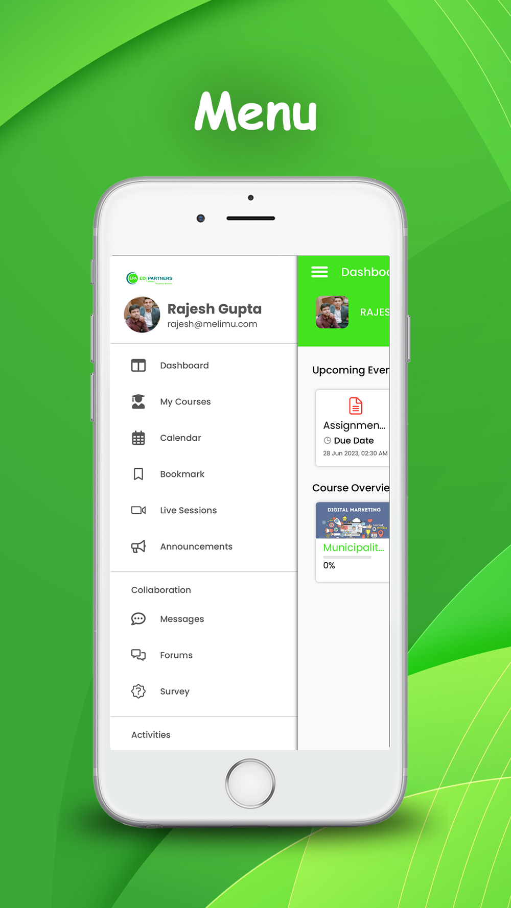 a) Collaborate with fellow students & teacher through forums, messages and chat.