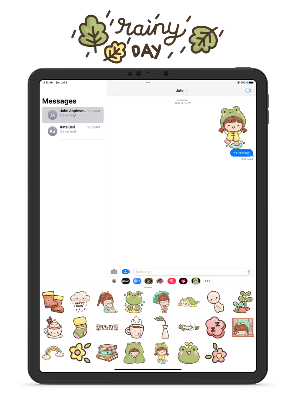 A cute rainy days stickers with many characters for iMessage