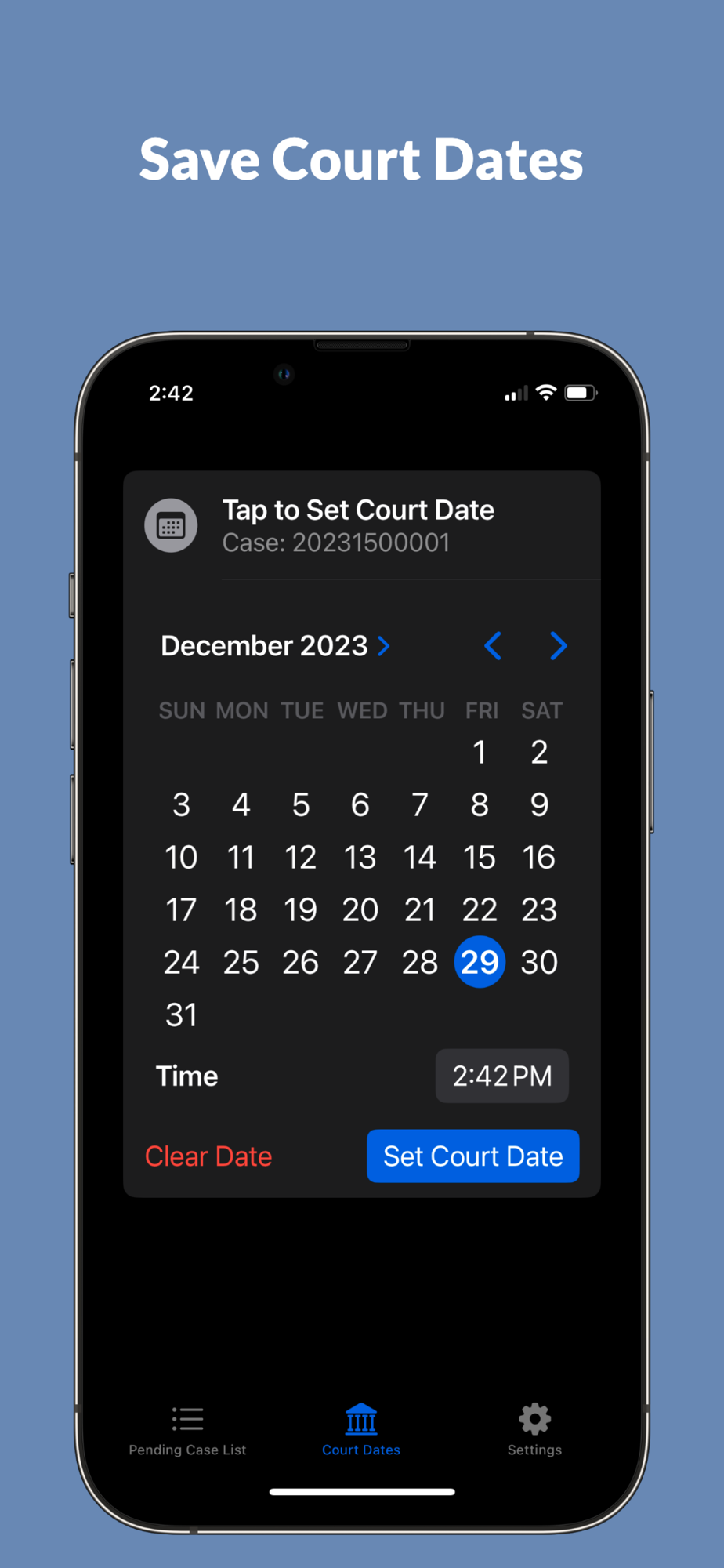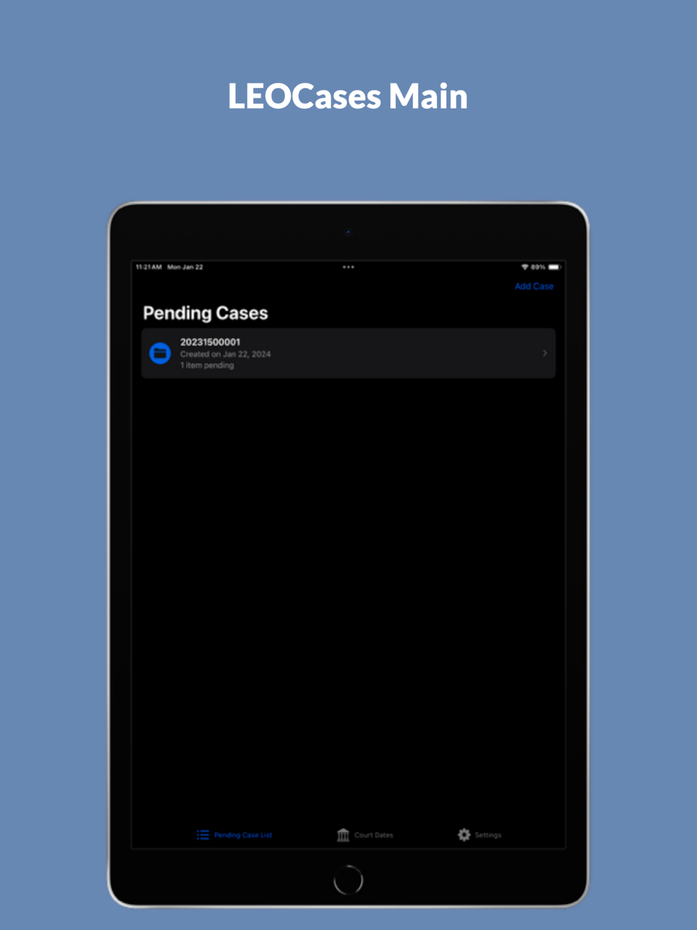 Never leave out important tasks and steps necessary to prepare your case again! LeoCases is a simple to-do list for Law Enforcement Officers (LEO), with predefined tasks/categories, allowing for quick entry. It includes everything a highly motivated officer needs to ensure all important case tasks are completed prior to court appearances. After entering a case number, an officer can enter associated court orders, search warrants, extra tasks and victim(s) identifier. Once victim identifiers are entered for the case, a checklist of victim associated tasks such as subpoenas, court orders, camera footage download, as well as any miscellaneous extra tasks can be entered. Then all that is necessary is to check off each task as it is completed! At a selected daily time, a notification with a count of case associated tasks still pending can be sent to the officer’s phone. The LEO can open the app and, with a quick glance at an icon next to his/her case number (green indicates all associated tasks are complete, blue indicates there are tasks pending), know exactly which cases still need work in preparation for court. Once all outstanding case tasks are completed and checked off, the LEO can delete the case simply by swiping left on the case number. Additionally, the LEO can add a court date to a case number.