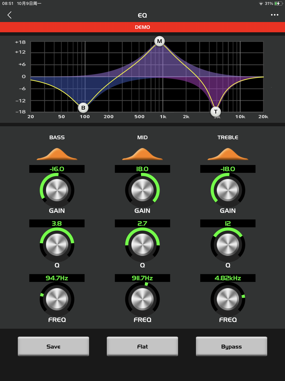 1. Adjust the frequency, gain, q factor, filter type and other parameters of eq;