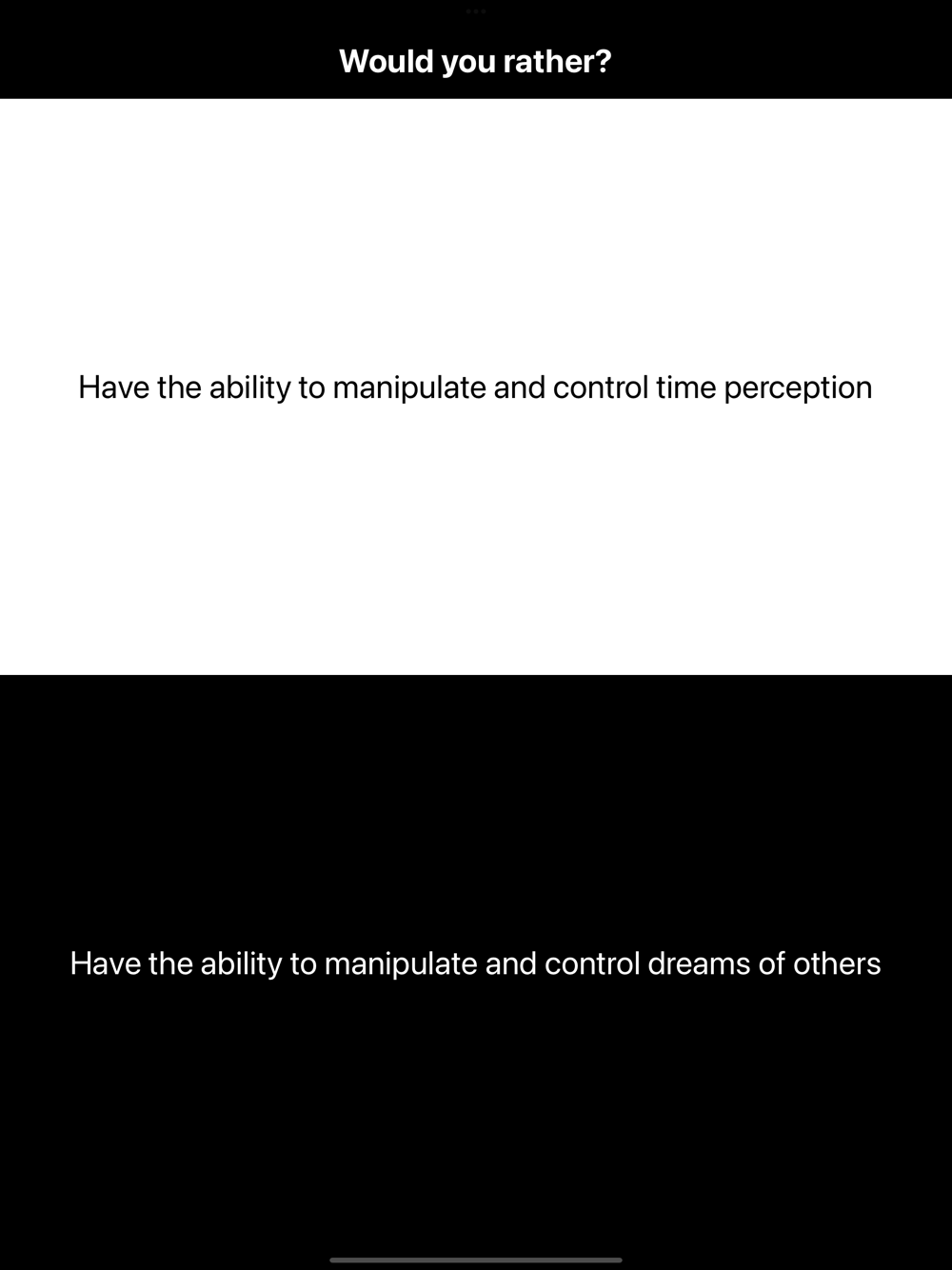 Would You Rather is a fun game that you can play to make fun, difficult, and wacky decisions! If you ever have any concerns, never hesitate to contact our customer support to let us know your thoughts!