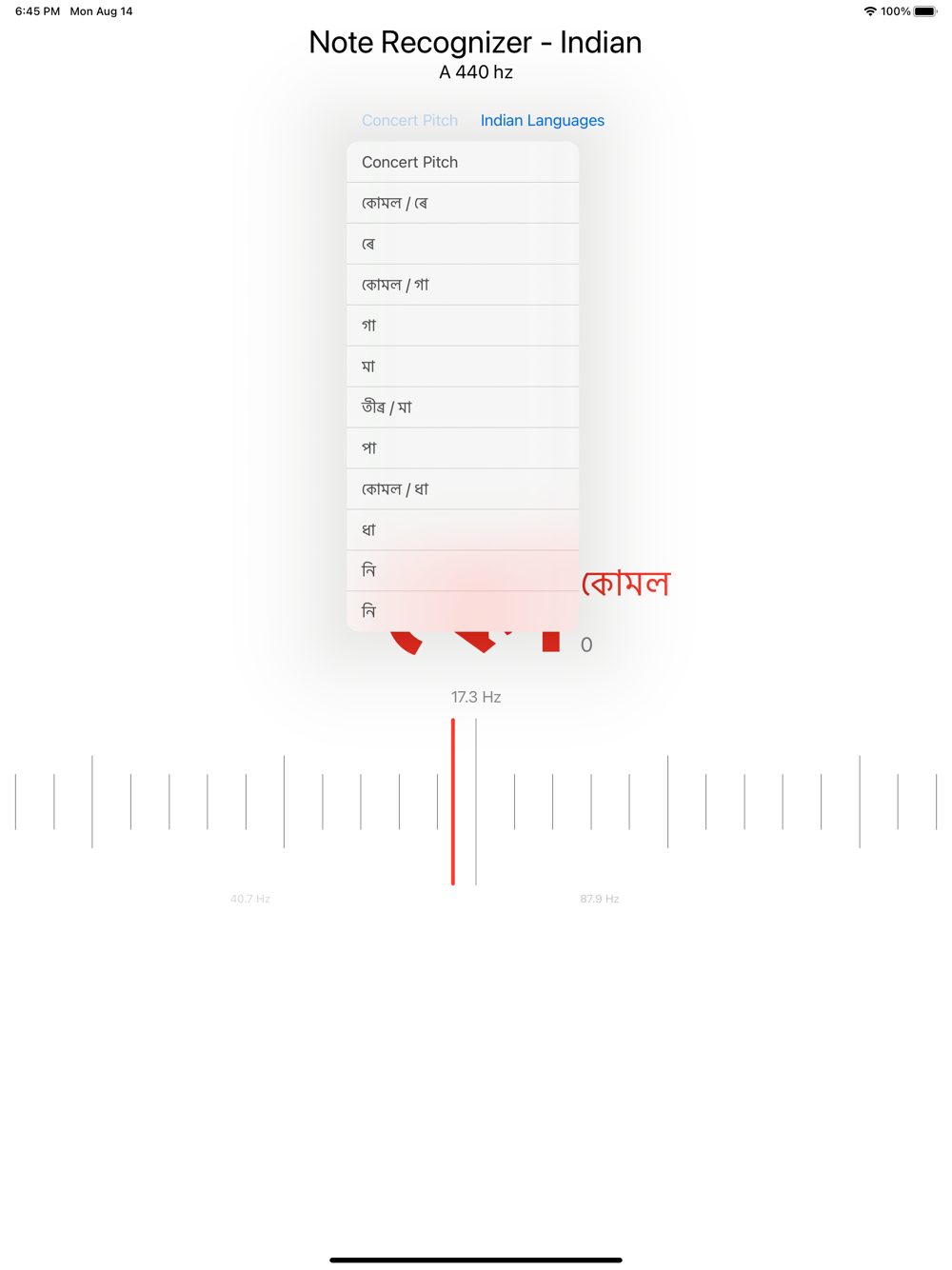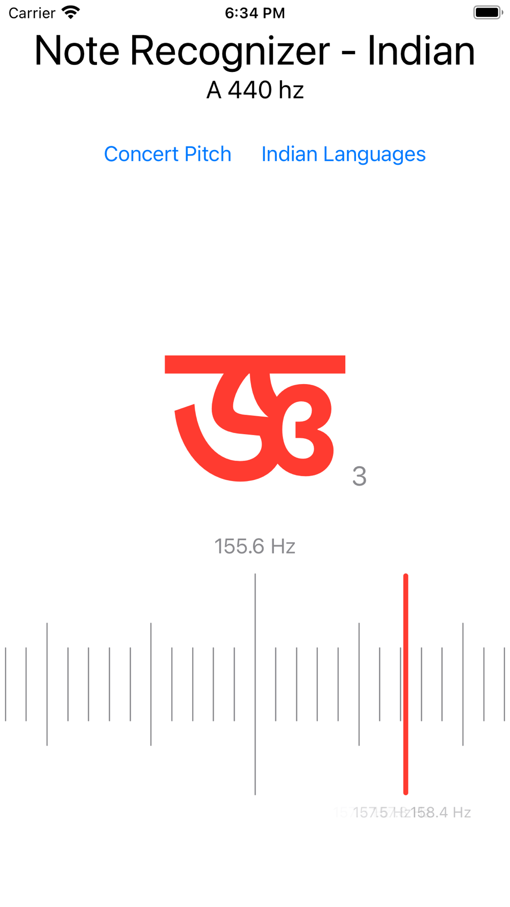 Note Recognizer Indian - To use this app to easily detect the pitch of any sound or note! in Indian launguages. The note recognizer indicates whether the note is too high, too low, or in tune.