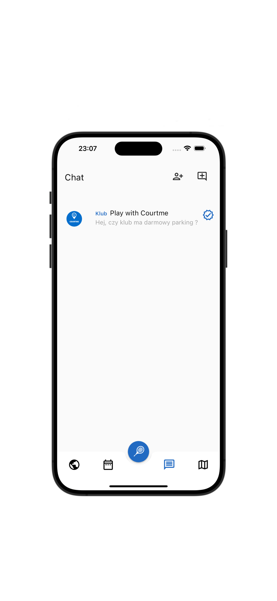 Courtme oferuje również wbudowany czat pozwalający na komunikację w czasie rzeczywistym między klientem, klubem i trenerem! Nie masz czasu dzwonić lub szukać innych możliwości kontaktu z recepcją? Napisz na naszym czacie, a pracownik klubu z pewnością odpowie tak szybko jak to tylko możliwe lub wręcz rozwiąże Twój problem bez zbędnego angażowania Cię w proces.