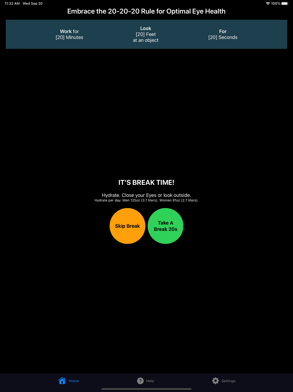 * The 20-20-20 Rule: Our app reminds you to take regular breaks and follow the 20-20-20 rule: Every 20 minutes, look at something 20 feet away for 20 seconds.