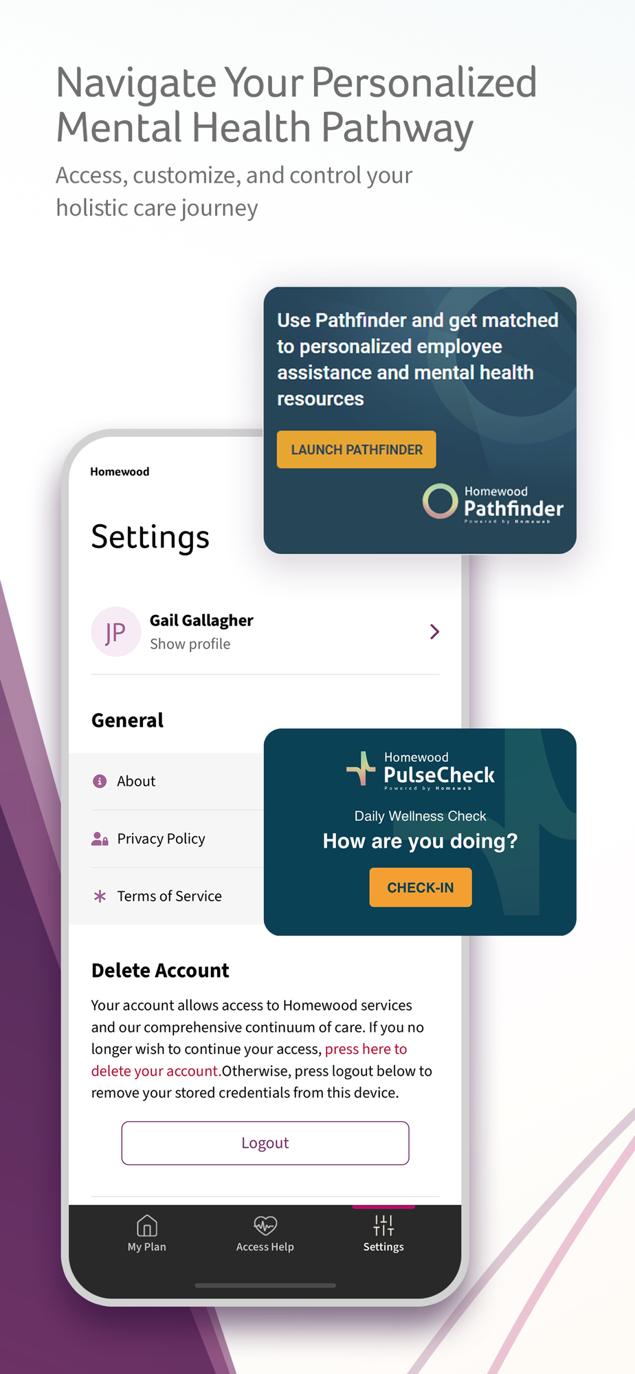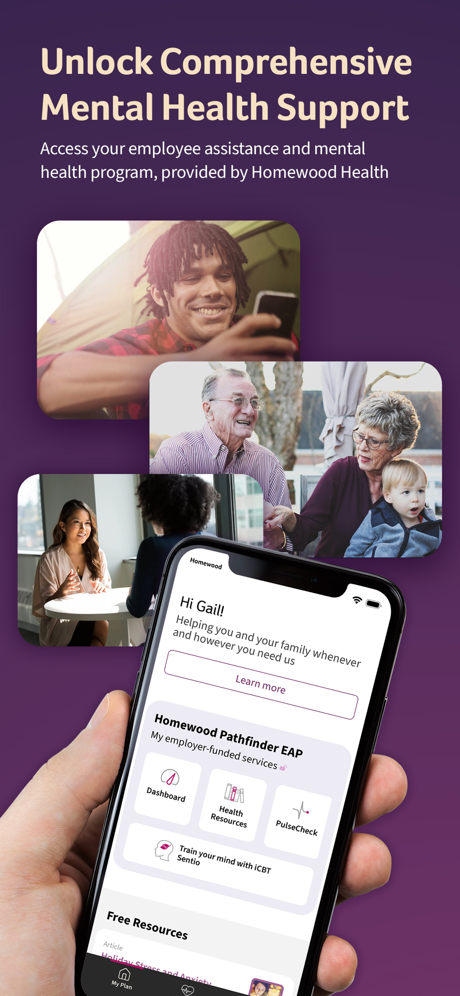 Homewood Health's app is your comprehensive digital companion for mental health and well-being. Designed to cater to the needs of individuals, employees and their families, our app offers instant access to a range of mental healthcare resources and tools. With Homewood EAP, experience seamless one-touch phone access to our Client Services Centre, engage with our transformative online Cognitive Behavioural Therapy (CBT) programs like Sentio and i-Volve, and enjoy a suite of support options through HomeWeb. Our user-friendly dashboard provides easy navigation to our extensive mental health care resources, ensuring you have the support you need, whenever you need it. Whether you're seeking immediate assistance or looking to explore self-help tools, Homewood Health is your trusted partner in nurturing your mental well-being.