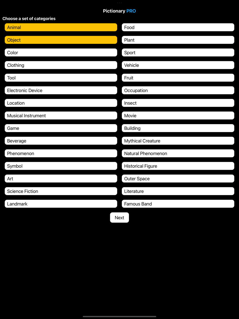 Introducing the Pictionary PRO - your essential tool for spicing up your Pictionary game night! This simple yet invaluable app is designed to provide you with a limitless supply of creative and challenging words to keep the drawing and guessing excitement going strong.