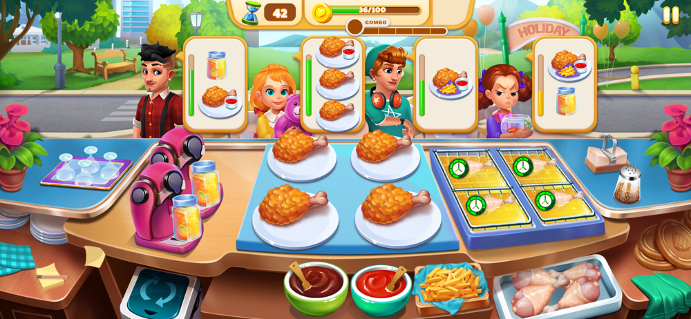 В игру очень просто играть: вы начнете с выбора ингредиентов и инструментов для приготовления пищи, а затем пора приступать к работе! Используйте свои кулинарные навыки, чтобы нарезать, смешивать и обжаривать вкусные блюда, которые заставят ваших клиентов просить еще. Но будьте осторожны, вам нужно работать быстро и успевать за заказами, иначе ваши клиенты потеряют терпение и уйдут!