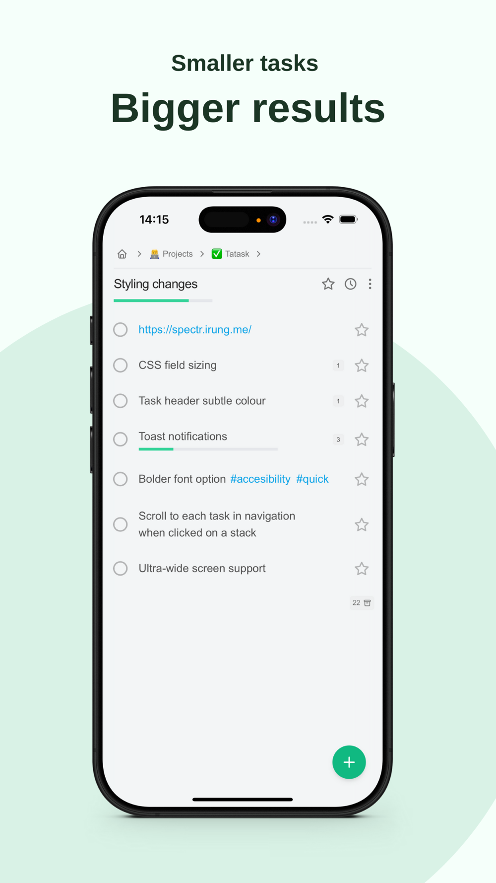 Tatask shows you a visual indicator of your progress on every task so you can get a little boost in motivation to complete things.
