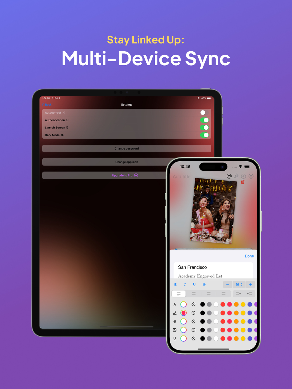 - iCloud Syncing: Automatically syncs your journal across iPhone and iPad, so you’re always up to date and backed up.