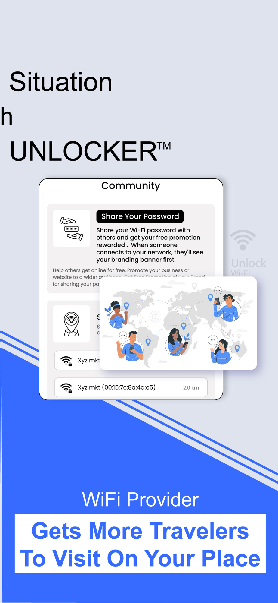 To use the app, businesses and brands start WIFI and add their WiFi network details. This includes the network name, password, and location. Users can then search for WiFi networks in their area and connect to them using the app.