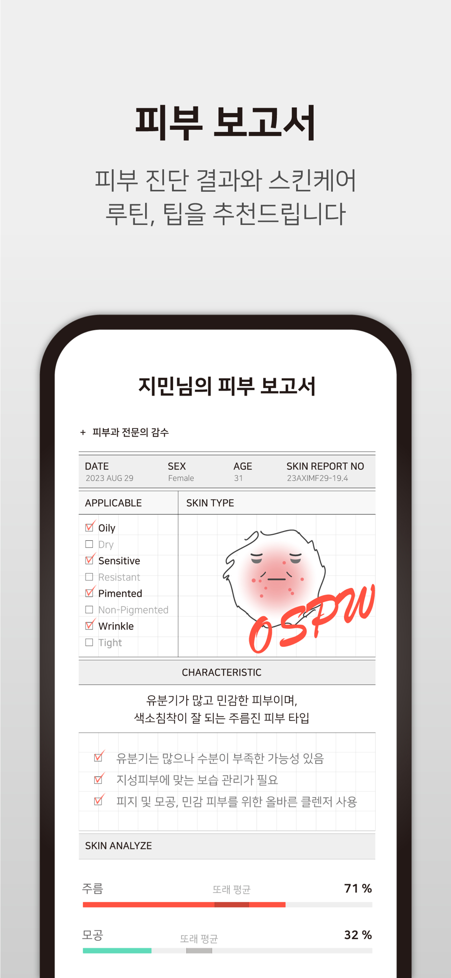 - 이를 바탕으로 피부 진단 결과와 스킨케어 루틴 팁을 추천 드립니다.