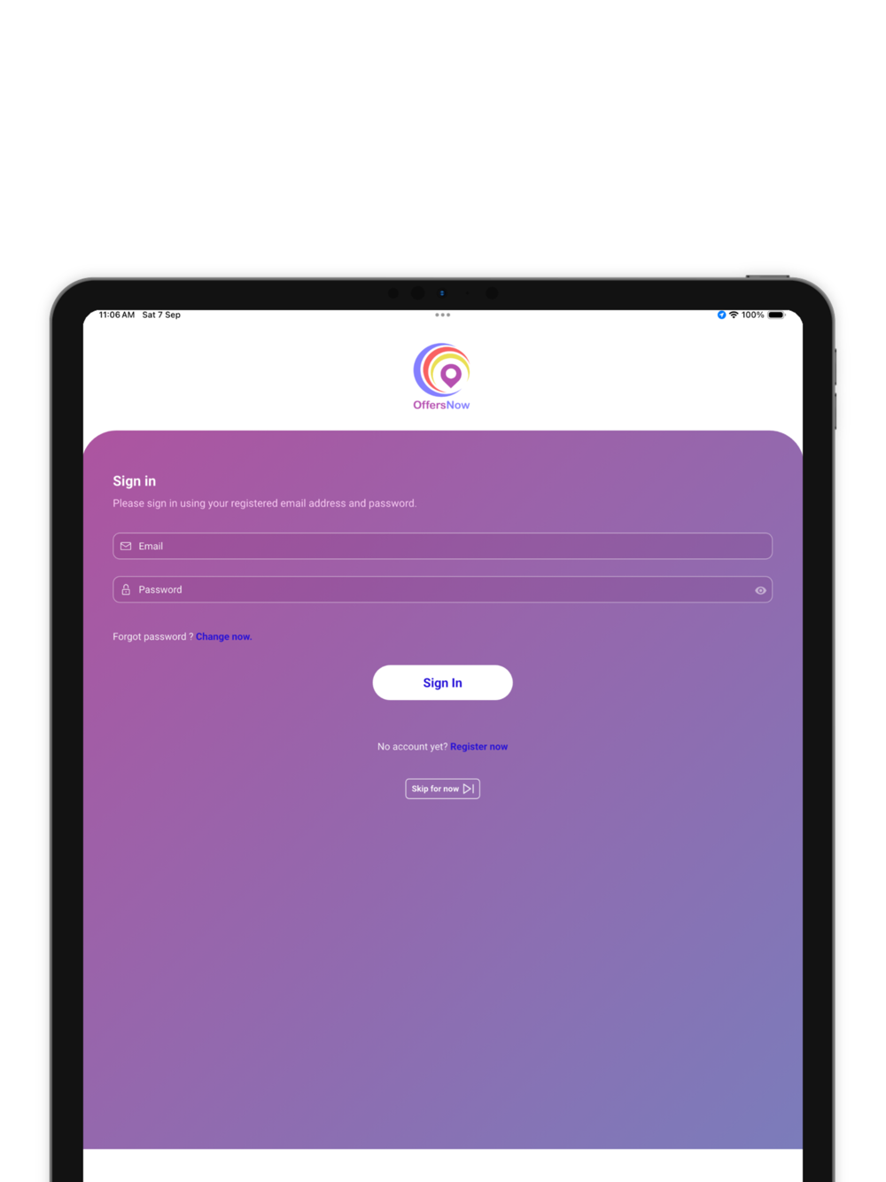We are OffersNow, a geo-targeted online platform; which intelligently delivers real-time promotions and live offers from local businesses depending on where you are. As a shopper, you will be able to consume hyper-local commercial information through the App and make purchase decisions with Shops in your proximity. Our platform is bespoke to each merchant that chooses to use our simple, flexible, and low-cost alternative to promote their business and attract local customers. OffersNow puts the marketing and control of offers back into the hands of local businesses. Our merchants create their own offers, choose their discount, quantity, and validity times and decide when to publish their promotions to suit their business needs.