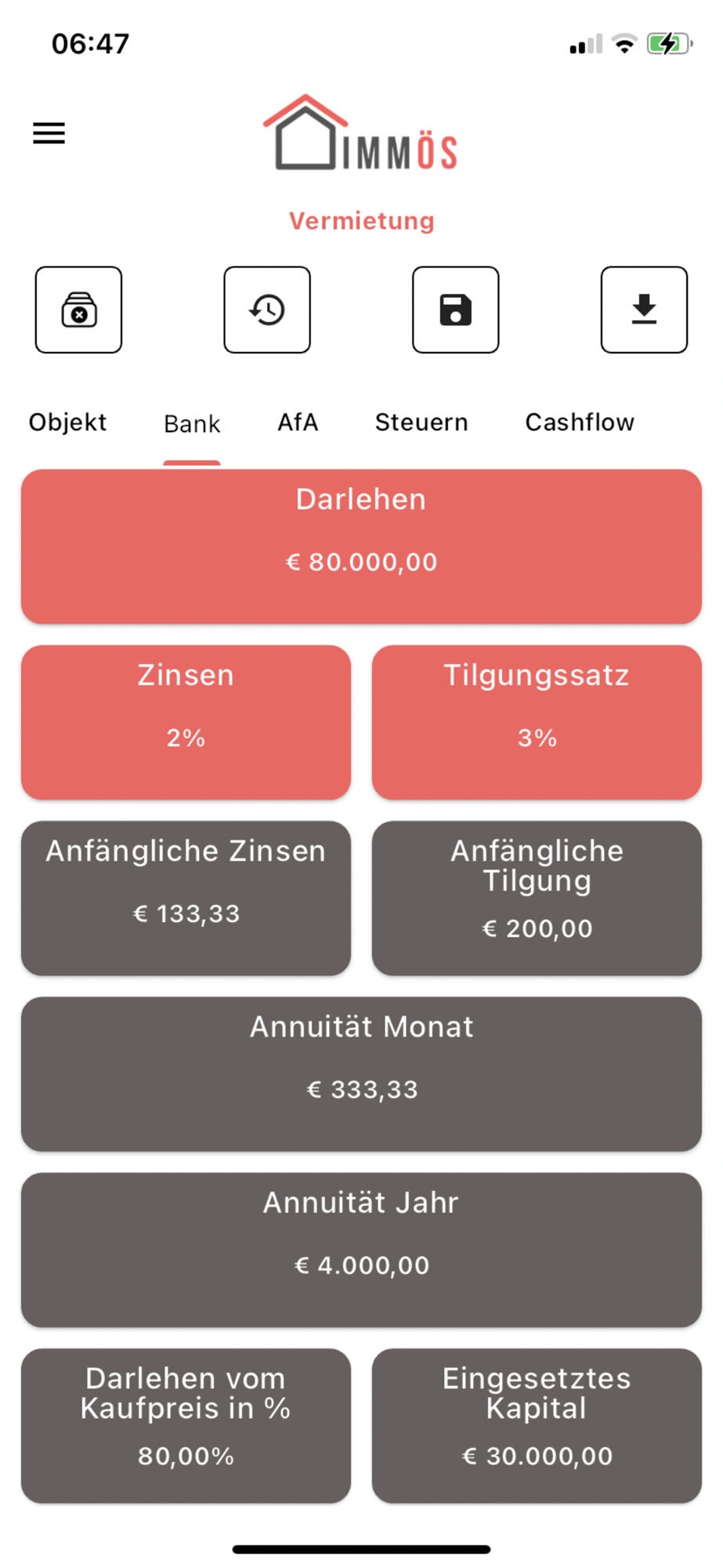 Mit dem intuitiven Vermietungsrechner kannst du die Cashflows nach Steuern für die ersten drei Jahre deiner Vermietung ermitteln.
