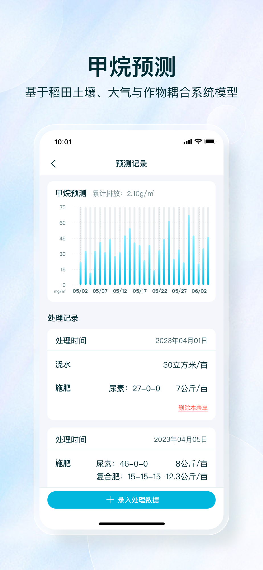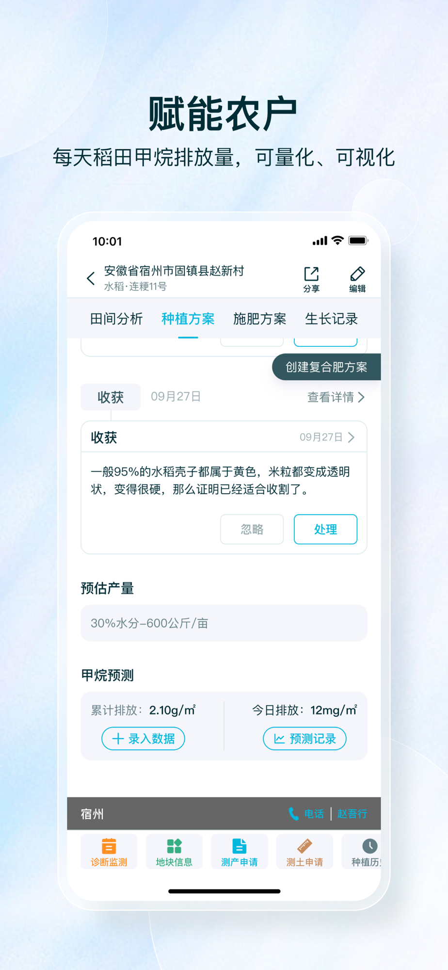 我们提供节水抗旱稻种植方案:节水抗旱稻是一种新型水稻品种,既具有水稻的高产优质特性,又具有旱稻节水抗旱特性;我们提供了节水抗旱稻独有的“旱直播旱管”、“不需淹水种植”的种植方案,减少了对水资源的依赖,还具有少肥少药的优点,适于轻简化栽培;甲烷预测:基于稻田土壤、大气与作物耦合系统模型,帮助用户模拟每天稻田甲烷排放量,量化、可视化在节水抗旱稻种植过程中甲烷的排放,体现以节水抗旱稻品种为稻田温室气体减排的重要作用。