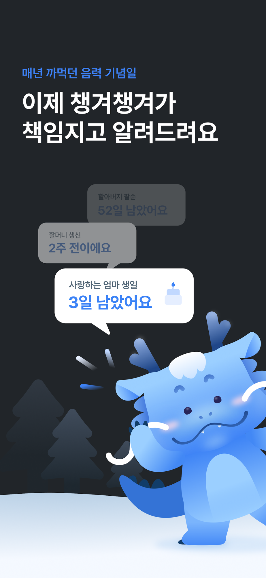 양력 날짜만 알아도 문제없어요. '챙겨챙겨'가 알아서 계산해요.