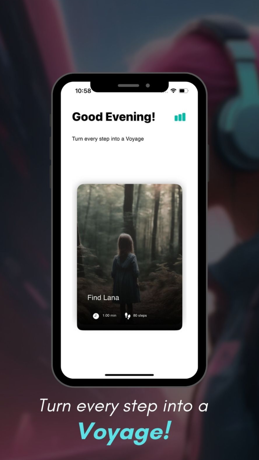 Voyage gamifies walkers by providing adventure based experience using spatial audios and real time steps counting