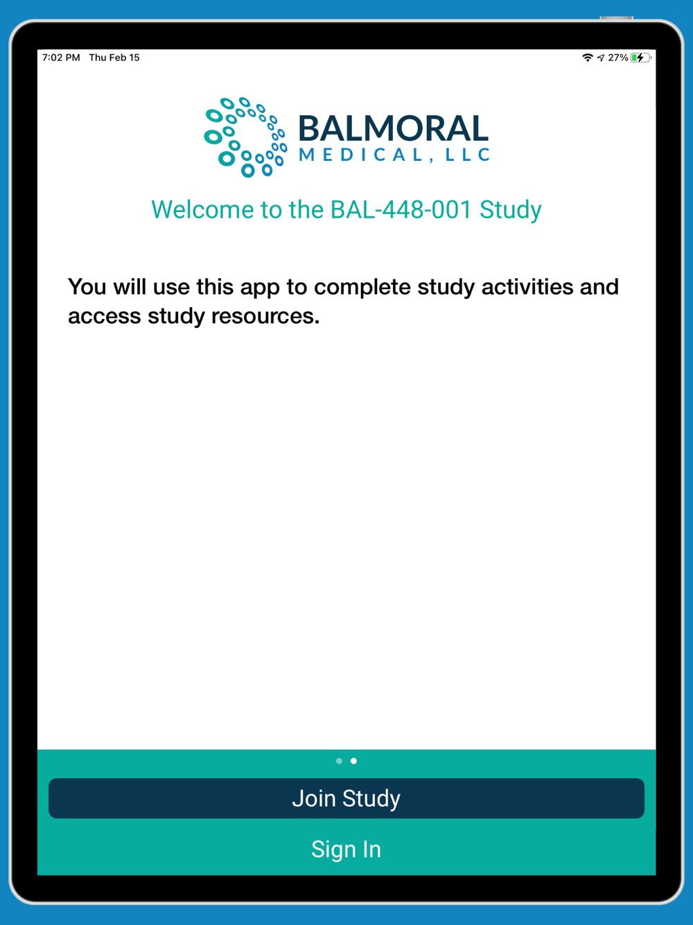 You will use this app to complete study activities and access study resources for the BAL 448 001 study.