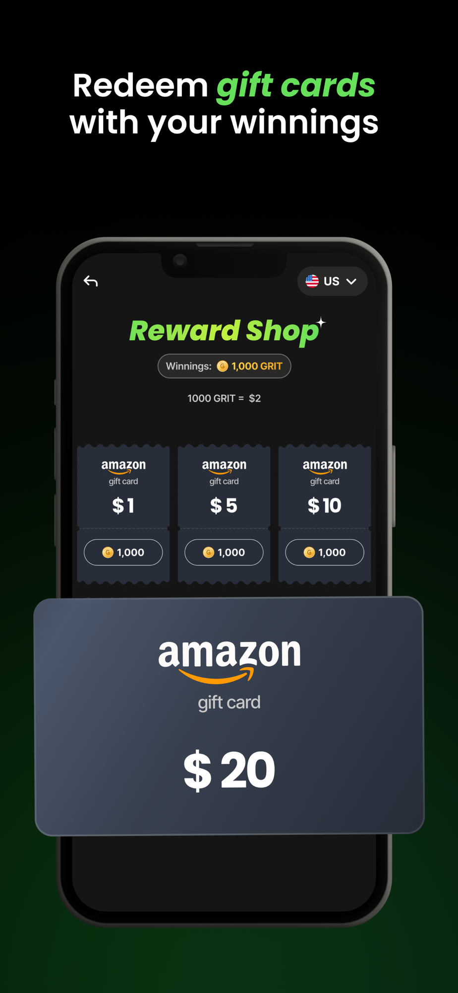 - Reward shop: You can now redeem your GRIT coins for Amazon gift cards. Play challenges with your subscription GRIT coins, convert them into winnings and redeem them for exciting gift cards.