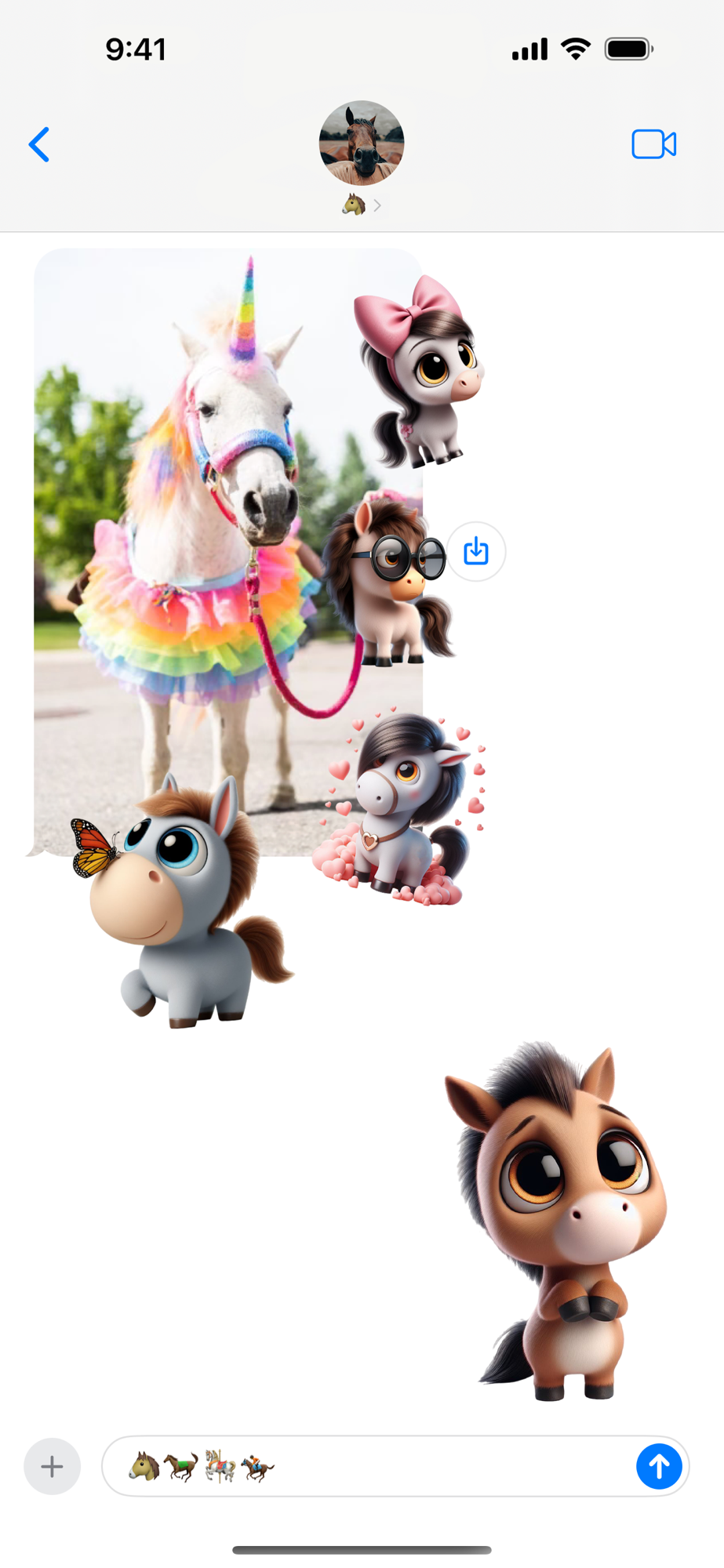 使用這款以可愛場景中的小馬為特色的小馬貼紙包,為消息增添一些樂趣。