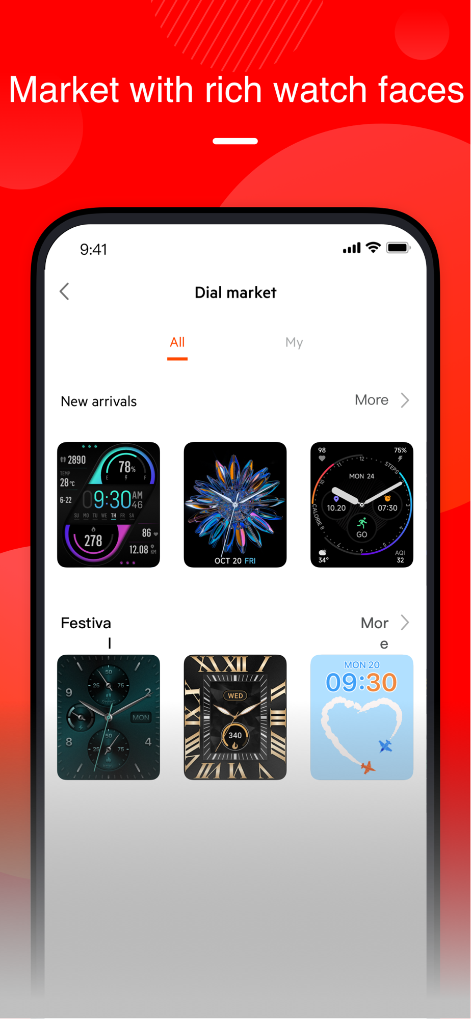[Change Dial]: A rich selection of watch face themes are available in the brand-new cloud dial market, giving your device a new look every day;