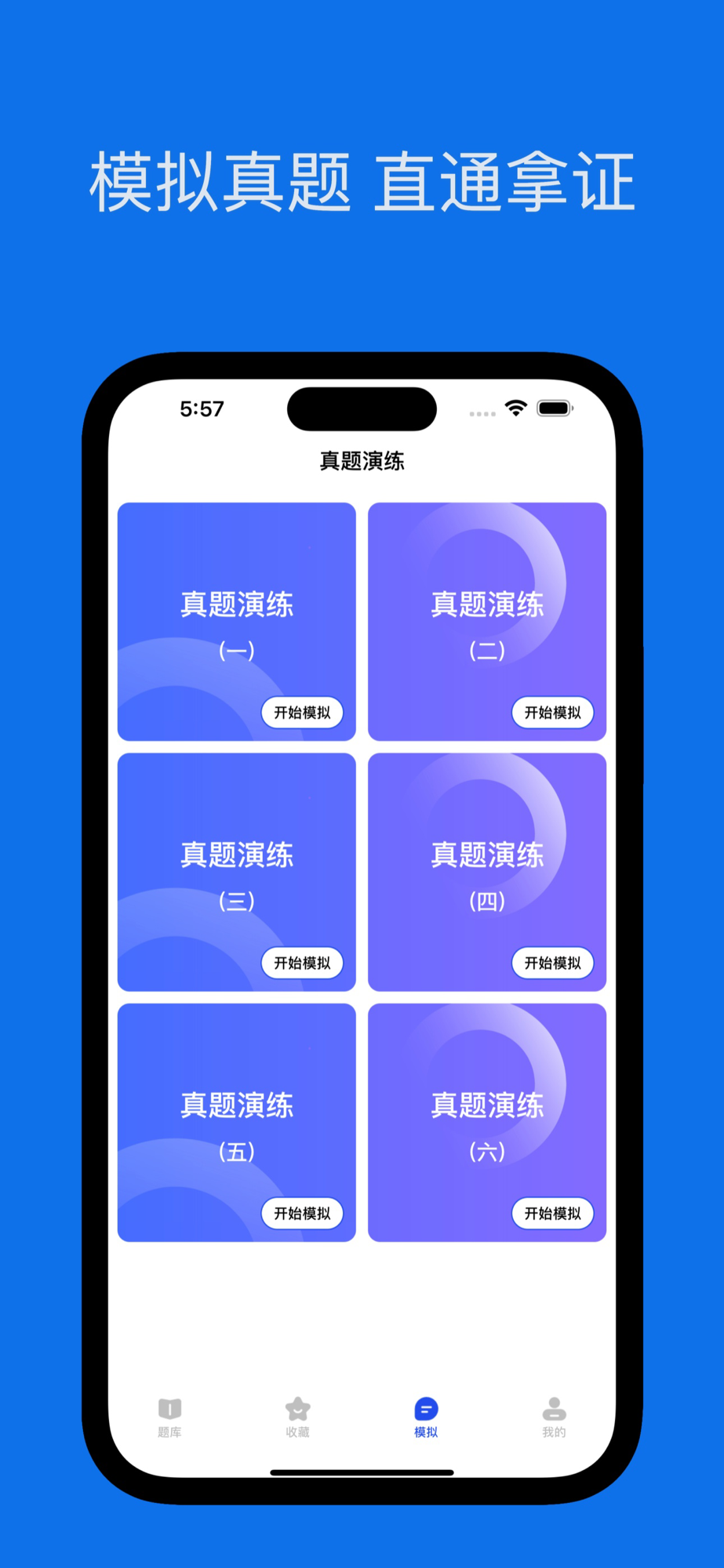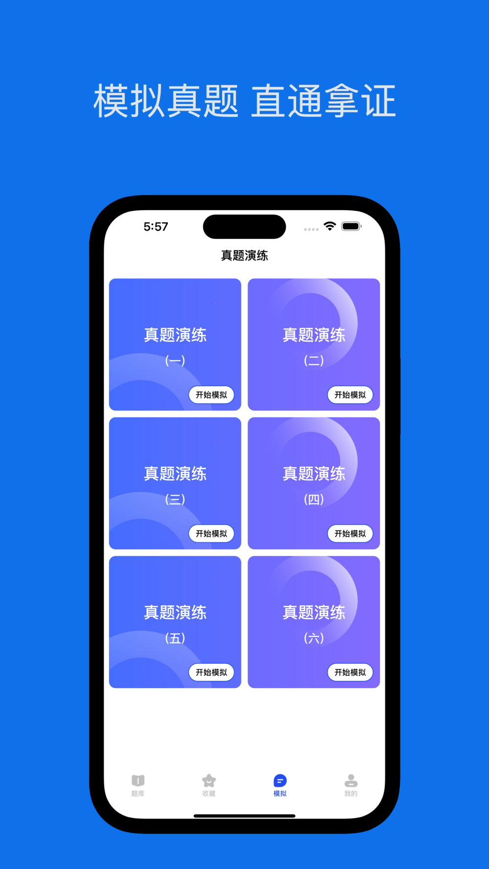 【模拟考证】提升实力: 每个类别提供6套模拟题,帮助用户更好地备考,拿证更有信心。