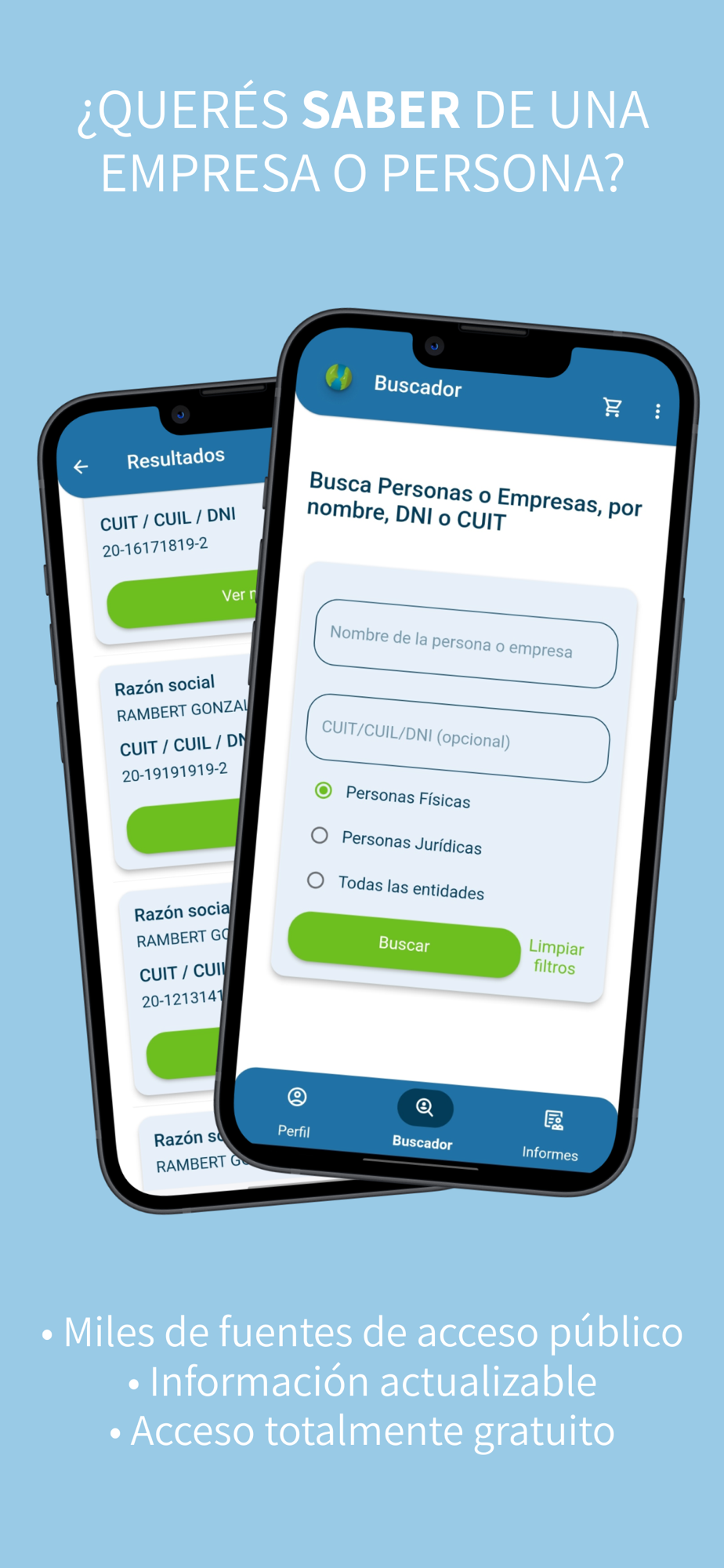 Search for any person or company in Argentina by name, DNI, CUIT, or CUIL and access their Commercial Report.