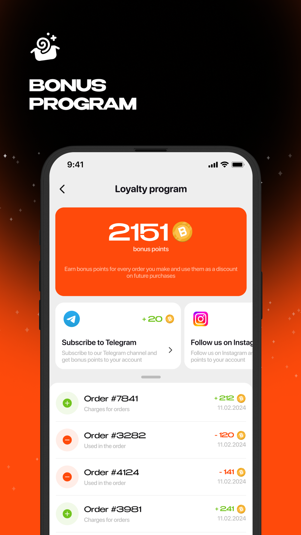 • Bonus program - collect points for every purchase and exchange them for free meals and other rewards.