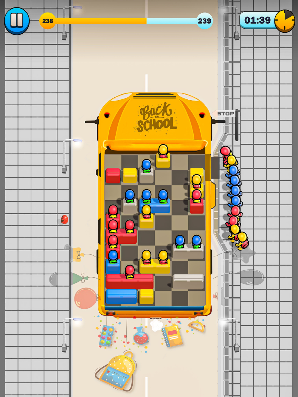Are you ready for an exciting bus jam in the world of 3D puzzle games where each jam presents a fun and challenging task? This is no ordinary seat block game, it's an ultimate adventure board game. In this School bus Seat Away game, you have to find a seat for each passenger. School Bus Seat Puzzle Game gives challenging seating situations, angry passengers and more. Each passenger has a specific seat color. You need to match them to their desired seats. Start the bus when all passengers sit in the correct seats