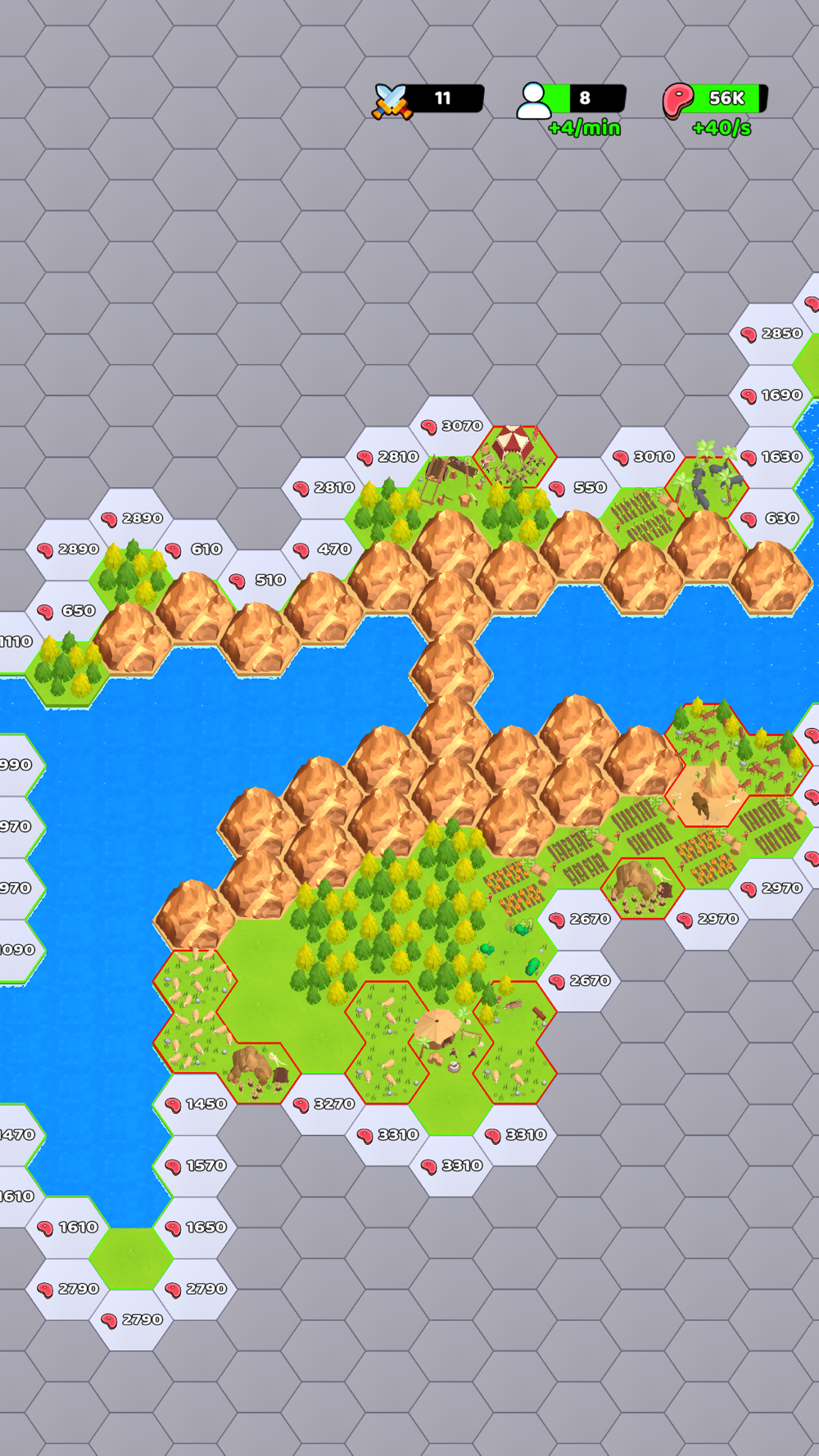 This is a civilization simulation game. You can expand your civilization by purchasing hexagons on the ground. Each purchase of hexagons may trigger unexpected things, you can freely choose your decisions. From the Stone Age to modern times, every choice you make matters. Enjoy this game and lead your civilization to conquer entire continents.
