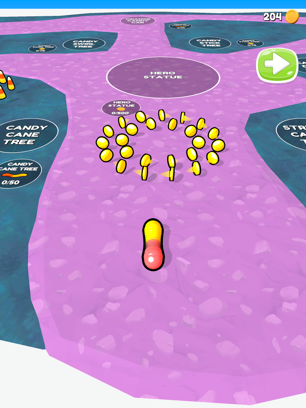 Your job as a gummy worm is to eat candy and collect coins to build candy cities! Easy and fun!