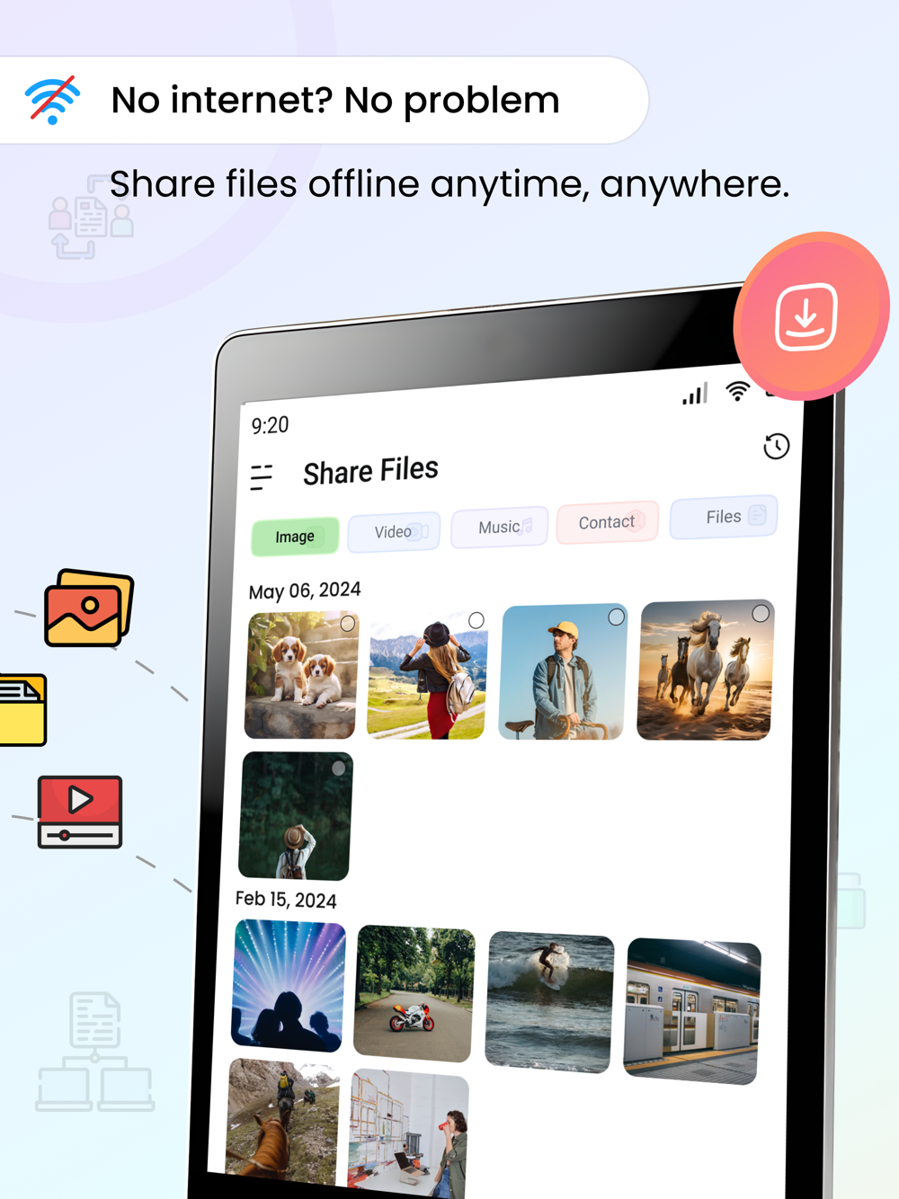 Welcome to file sharing app, the ultimate solution for hassle-free file sharing! With our innovative platform, you can effortlessly transfer a wide range of files including images, videos, music, documents, and more, all in one place. Whether you're sending files to friends, family, or colleagues, our app ensures seamless and secure sharing every time.