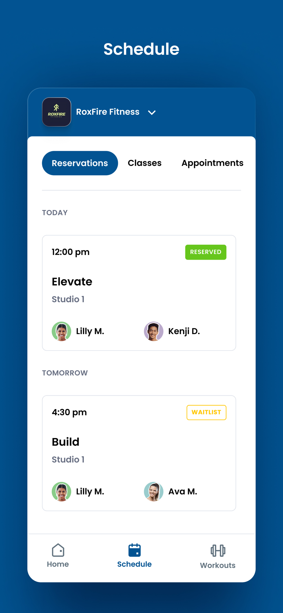 For members of RoxFire Fitness to reserve their place in a class, sign up for gym events, and general account management like updating headshots and credit card on file.