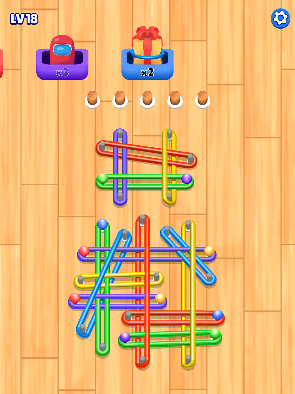 + Untangle: Solve mind-bending puzzles by removing pins and collecting the rubber bands.