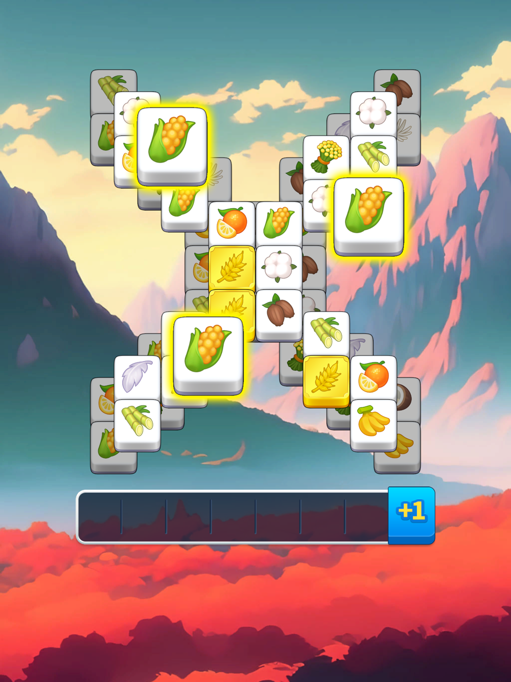同じ絵柄のタイルを3つ揃えると消すことができます。