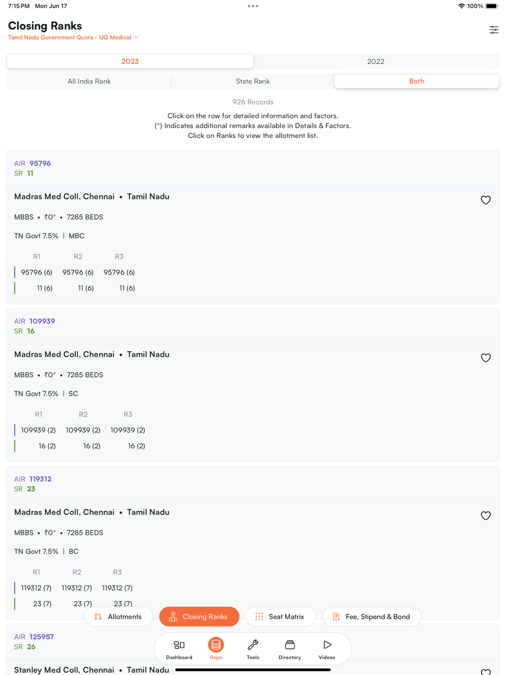 With 10+ years of experience in helping candidates secure the best seats, ZyNerd offers comprehensive, accurate, and instant information on NEET PG/MBBS/BDS Counselings, including Every State Counselings and All India Counseling. Our data includes allotments, cut-offs, fees, stipends, bonds, and penalties, all in a single dashboard.