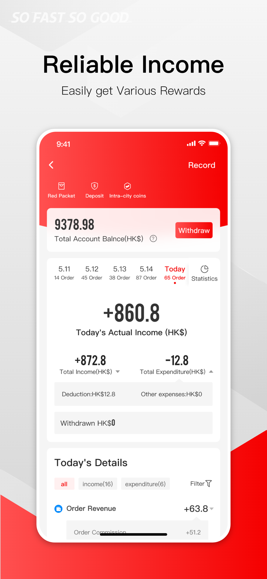 順豐同城急送,專注同城配送的專業團隊!打造同城物流專業配送平台!SoFast Rider APP 是一款為順豐同城配送員打造的收入好幫手,如果您時間零散,註冊兼職,可以自由接單,自己做自己的老闆,平台提供專業指導培訓,單單結算,讓您隨時隨地開賺;如果您時間充足,入職專職,大數據精確計算合理派單,輕鬆送貨。順豐同城騎士,海量訂單等你來,月入過萬,更有多重活動,幫助收入!