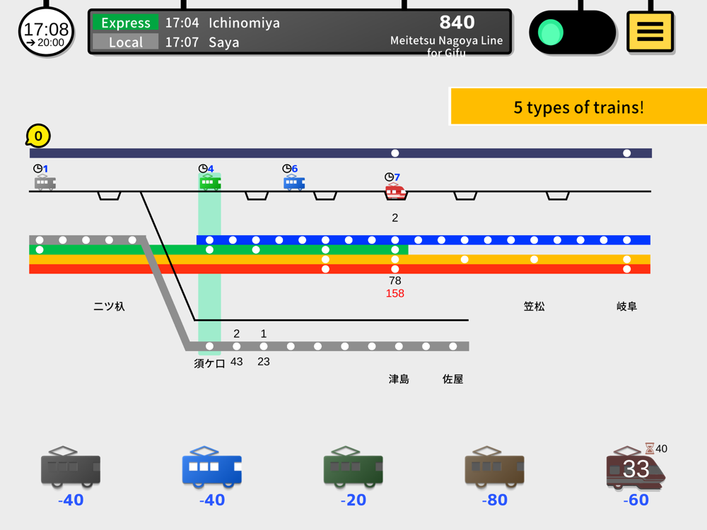 As a train commander, you can transport your customers by sending out various trains, such as local trains and express trains.