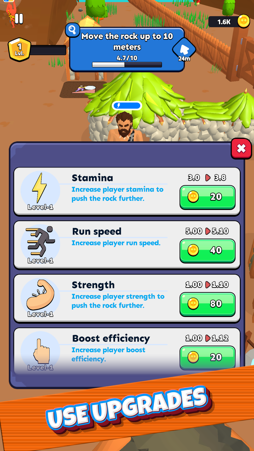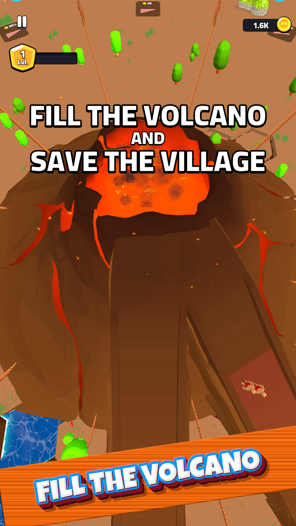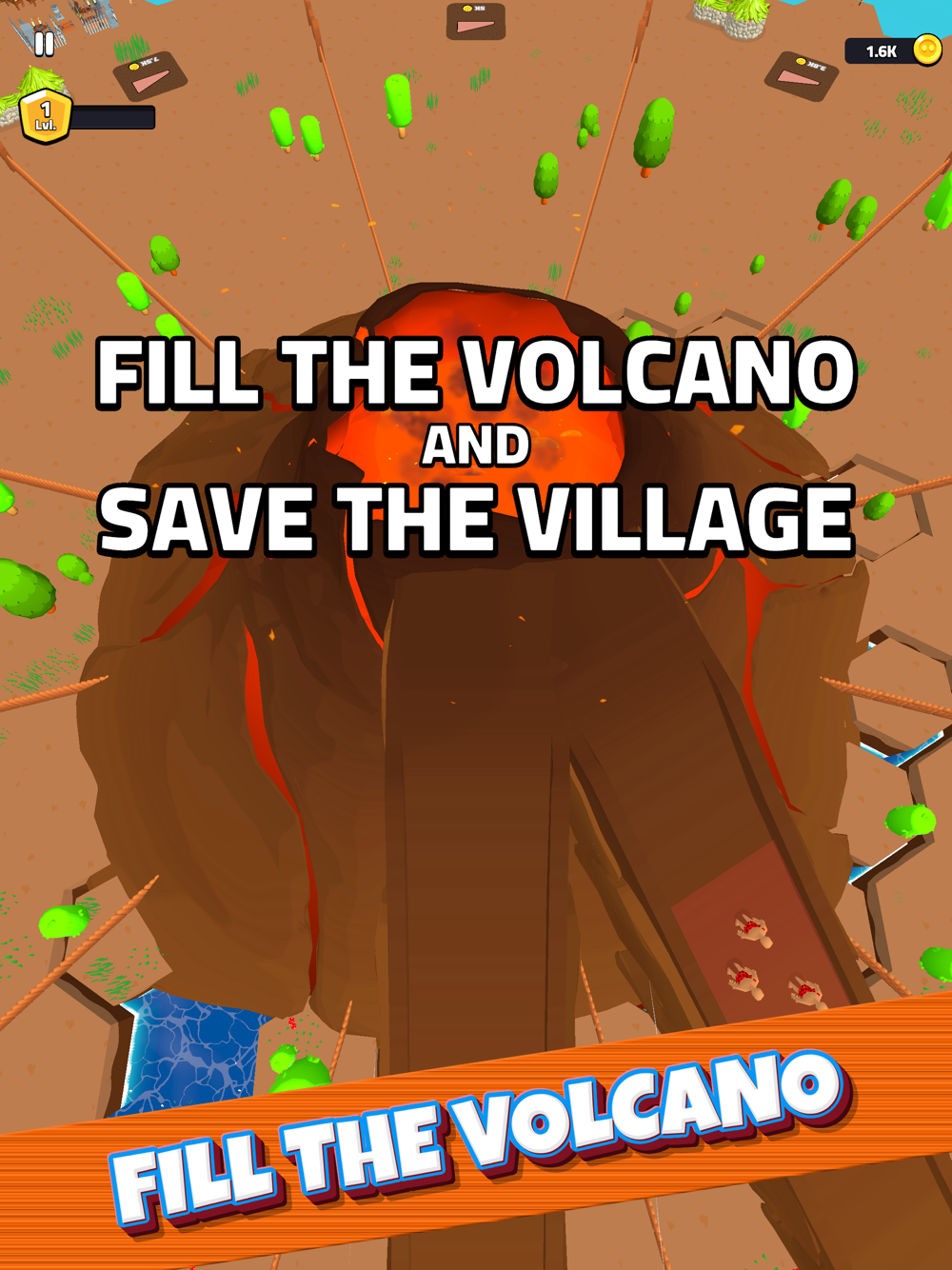 Get the workers, use the upgrades, activate the other ramps leading to the volcano, fill the volcano with stones, and save the village!