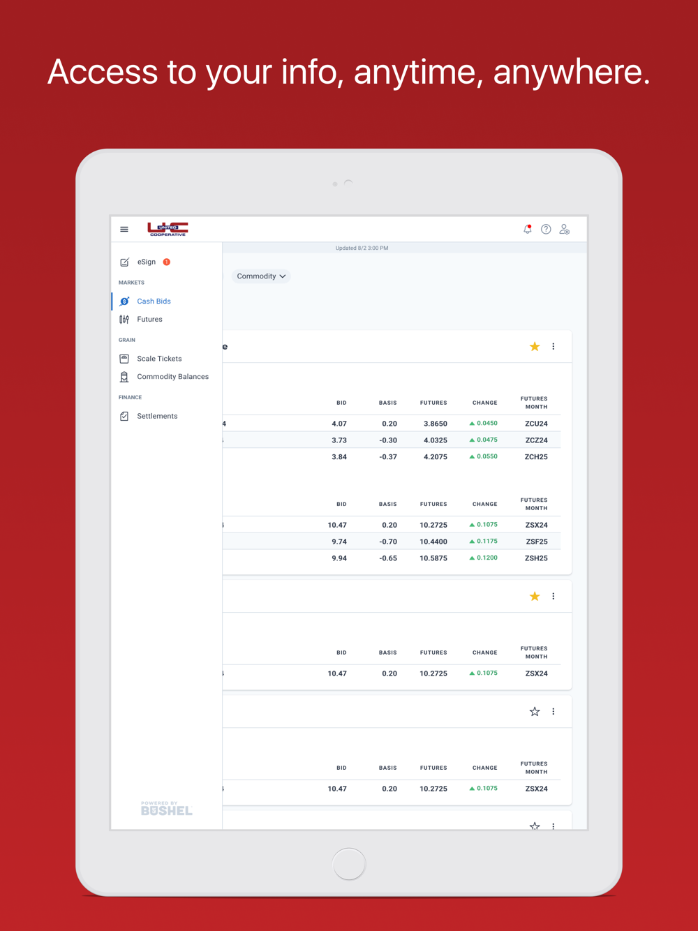 Cash Bids: View a location's cash bids in real-time