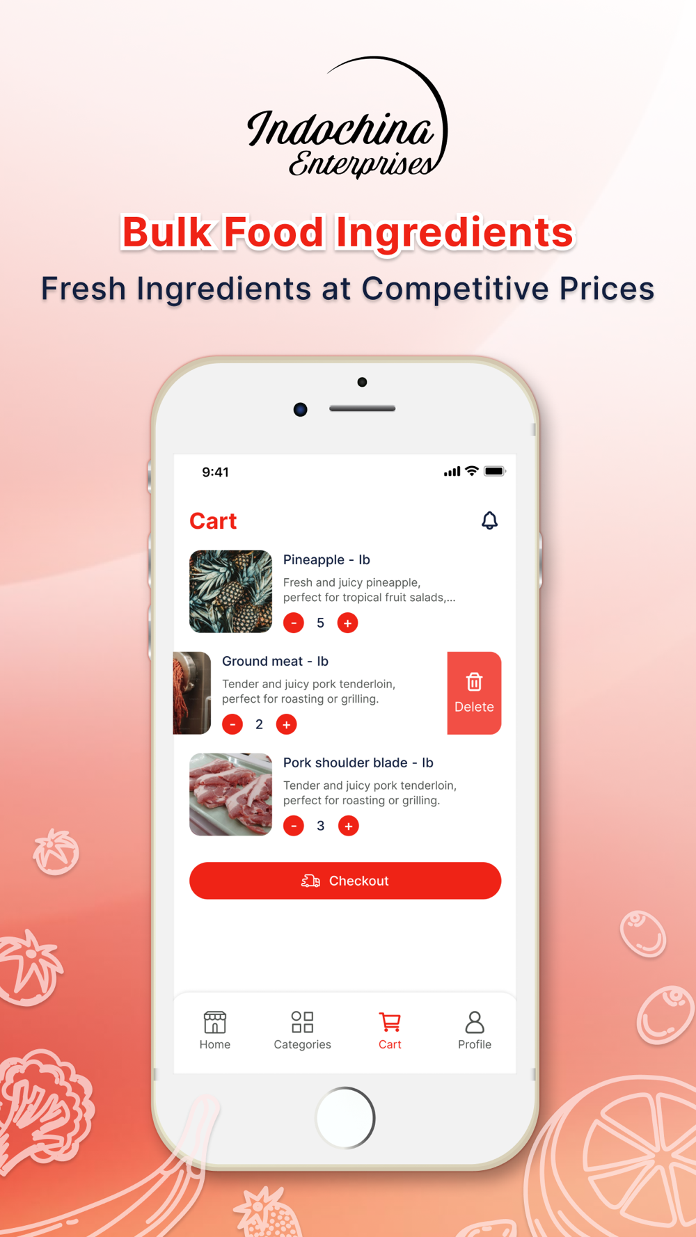 Indochina Enterprises is the ultimate shopping app designed for wholesale customers such as restaurants, hotels, and food stalls. Simplify your purchasing process with our user-friendly interface that allows you to browse a wide range of products, add items to your cart, and checkout seamlessly—all in one place.