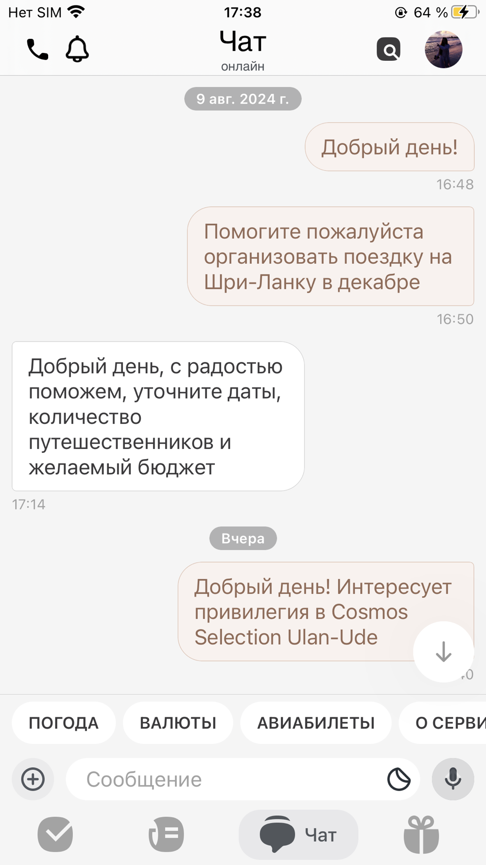 Приложение, c помощью которого вы можете оперативно решать ваши вопросы в режиме онлайн-чата с консьержем в разделе "Чат".