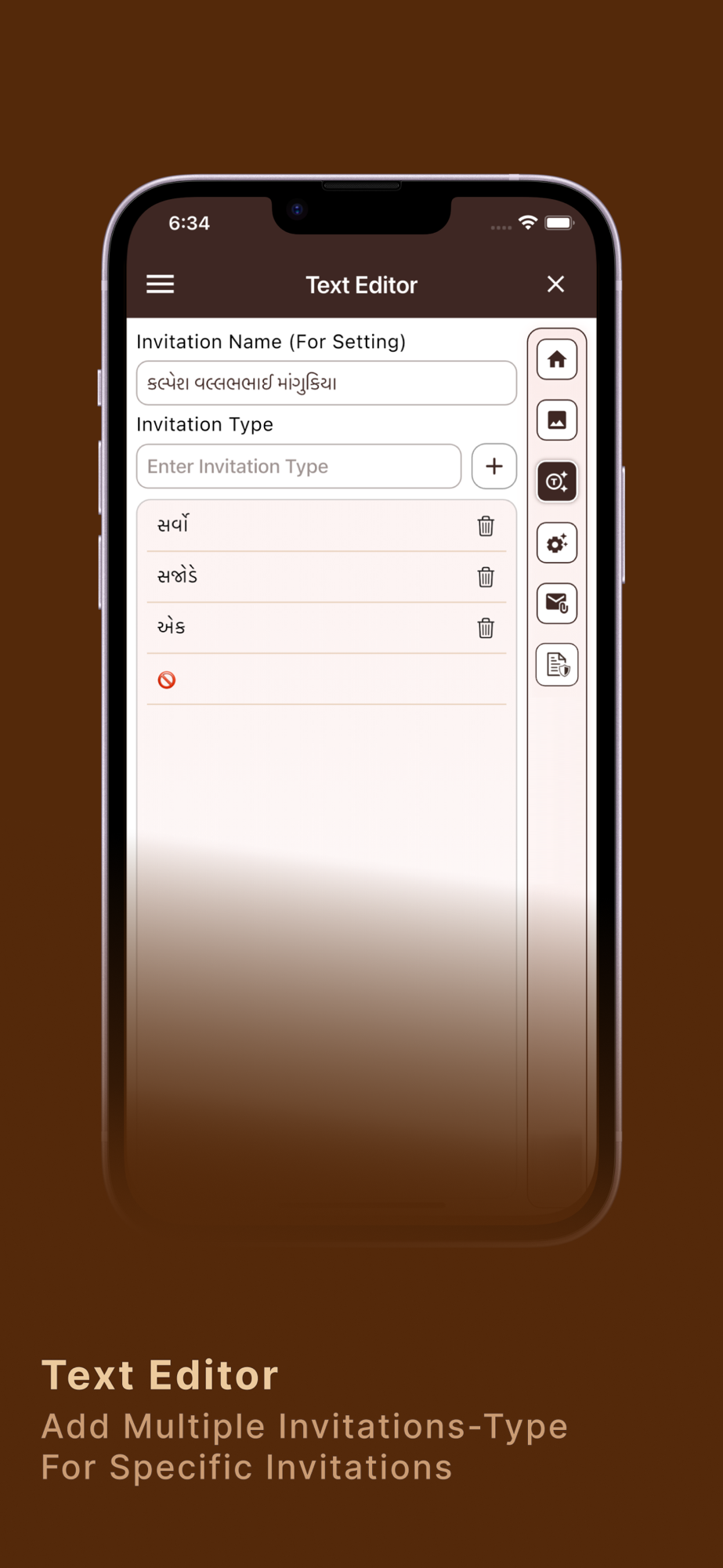 2) Make setting to write the name on invitation card image.
