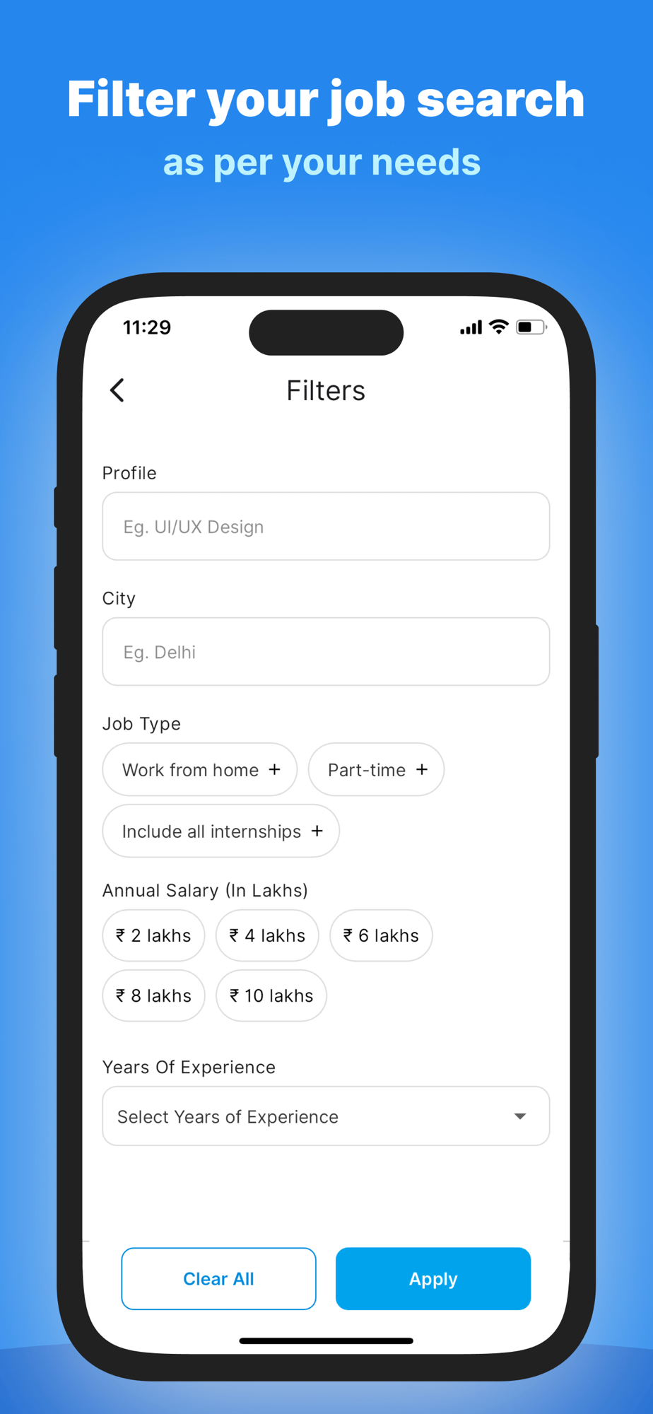 ◾Supports Quick Search via Advanced Filters: Search for internships and jobs using filters for preferred location, profile, experience level, mode of employment, and salary.