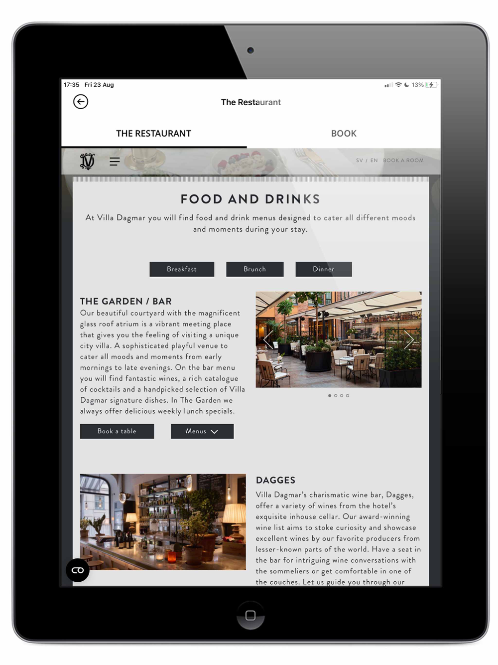 Our grand dame, Hotel Diplomat, stands proud on the beautiful boulevard of Strandvägen with mesmerizing views over Nybroviken harbour. Close by you find the chic Villa Dagmar, an eclectic and chic boutique hotel on vibrant Nybrogatan. The curated sanctuary Villa Dahlia is in the lush surroundings of Tegnérlunden park, overlooking the rooftops of the city. On these prime addresses, each residence features warm and inviting guest rooms, social spaces, and restaurants as well as rejuvenating spa and fitness facilities.