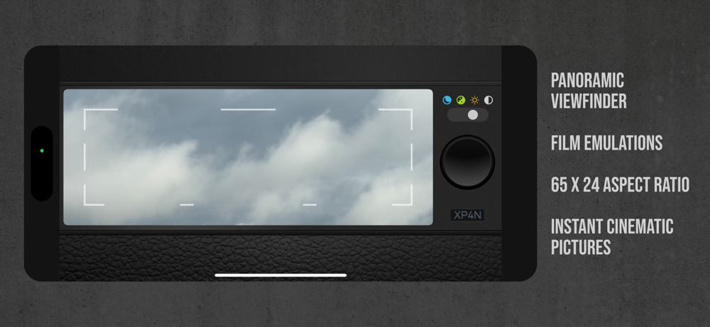 This app is designed to simulate the cinematic qualities of the XPAN, including emulation of 8 distinct film stocks that are often paired with this camera: