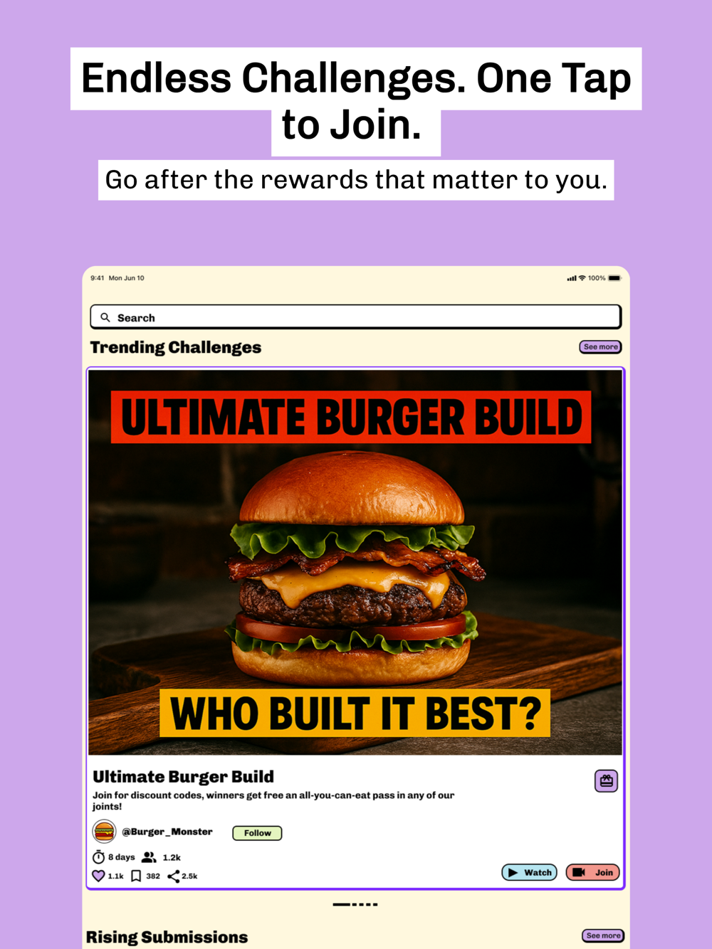 1. Join a Challenge - Want to dance, cook, do a trick shot, or show off a cool skill? Pick a challenge and upload your short clip.