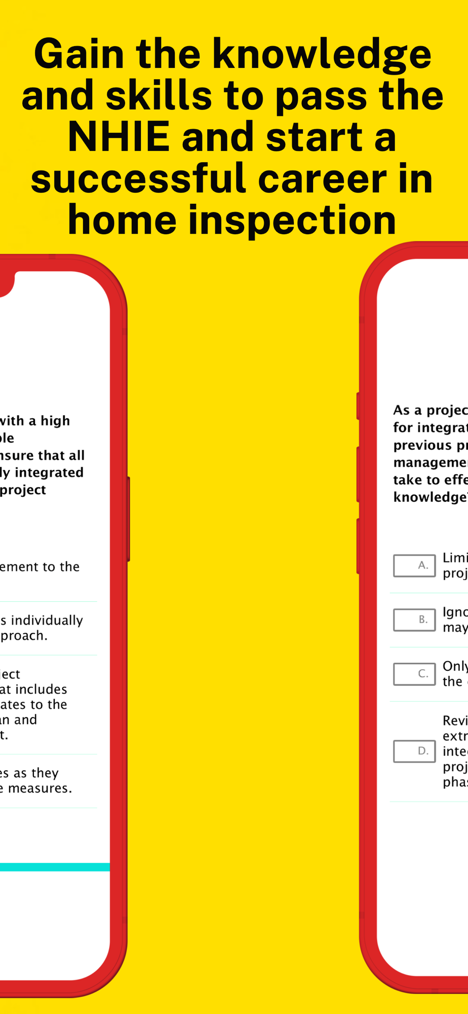 • NHIE (National Home Inspector Examination): Gain the essential knowledge and skills required for a successful career as a professional home inspector. This certification covers various aspects of home inspection, including structural systems, mechanical systems, plumbing, electrical, roofing, exterior, interior, and environmental concerns. Learn how to conduct thorough home inspections and produce accurate, detailed reports.