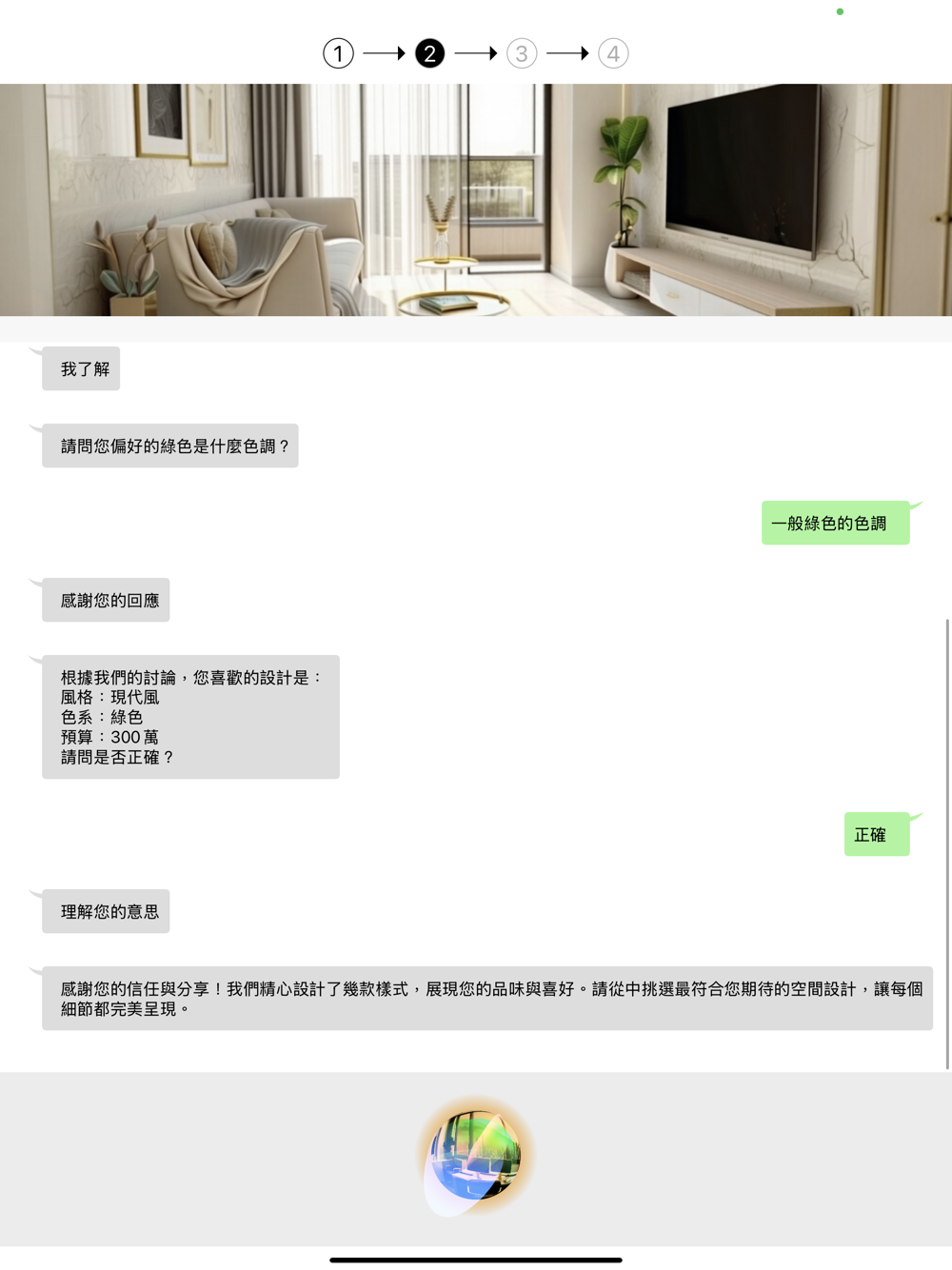 AI 智慧對話 – 透過語音或文字與 AI 室內設計顧問互動,即時獲取專業設計建議。