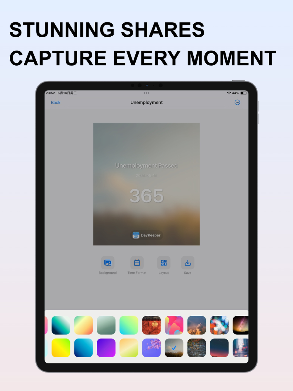 · Share Your Days: Select background images and date styles to generate beautiful shareable pictures